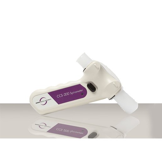 The CCS-200 spirometer produces accurate and repeatable spirograms for use in NIOSH-compliant programs. The single-use disposable mouthpiece mounts easily and securely in the handle, and is removed after testing with the press of a button.